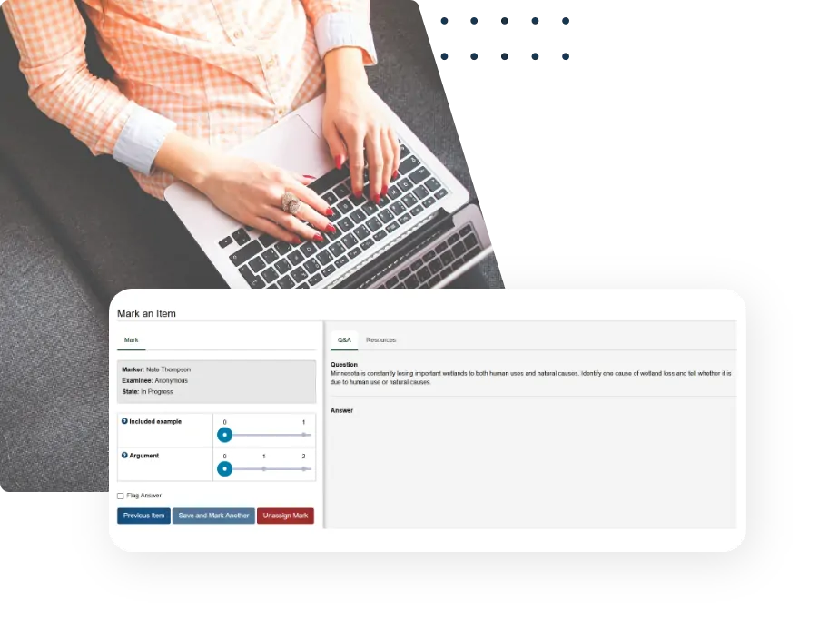 Do your educational assessments include an essay component? Our integrated marking module saves time with custom rubrics, marker assessments, and scoring. Define how many markers need to see each student, which rubrics to use, and efficiently manage your team.